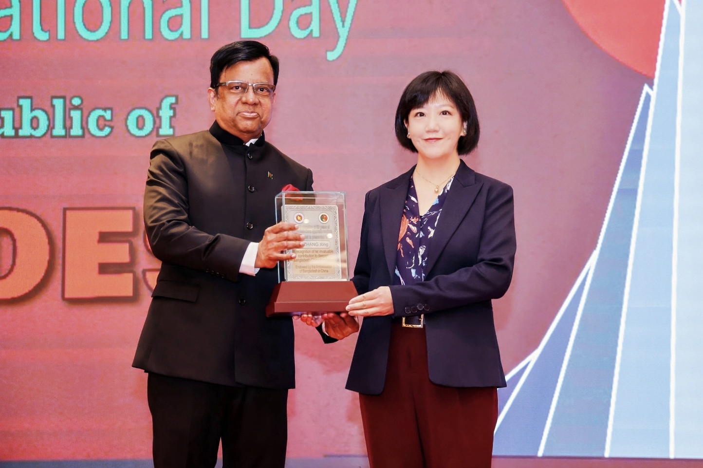 在中国与孟加拉国建交50周年之际,孟加拉国驻华大使纳兹穆尔(Md Nazmul Islam)于2025年4月9日在京举办的孟加拉国独立54周年国庆招待会上,颁授孟中建交50周年贡献奖,表彰为孟中友好关系作出突出成绩的中方五位个人和一个集体。博鱼网页版南亚学系南亚文化/孟加拉语教研室主任张幸副教授与四位中国前驻孟大使获得个人奖;中央广播电视总台孟加拉语部获得集体奖。