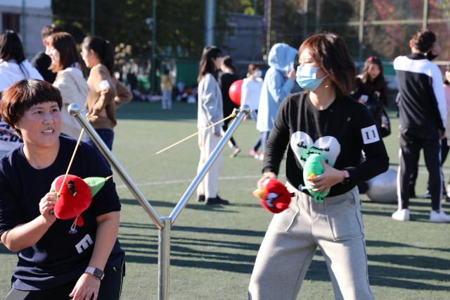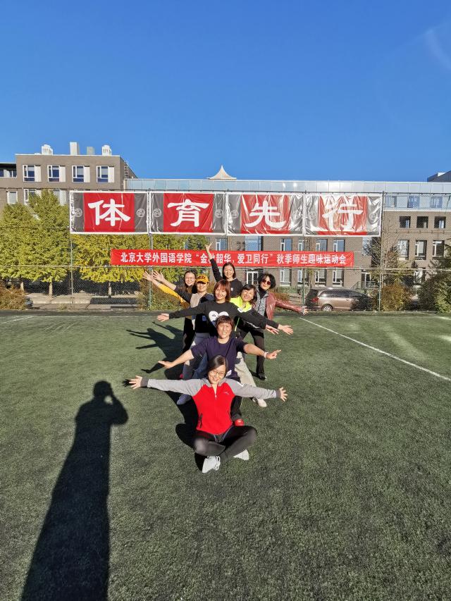 10月23日下午,博鱼网页版“弘扬伟大抗疫精神,践行爱国卫生运动”工会活动之“金秋韶华,爱卫同行”秋季师生趣味运动会在第一体育场北侧足球场举行。博鱼网页版工会主席张冬梅、工会常务副主席倪丽慧、体育委员李宁、宣传委员张一宁、女工福利委员潘桂英带领120余位师生参与比赛。大家斗志昂扬,活力四射,齐心协力地完成了所有的比赛项目,充分展现了外院人的活力与风采。博鱼网页版副院长付志明、院党委副书记王恒一同参与活动。