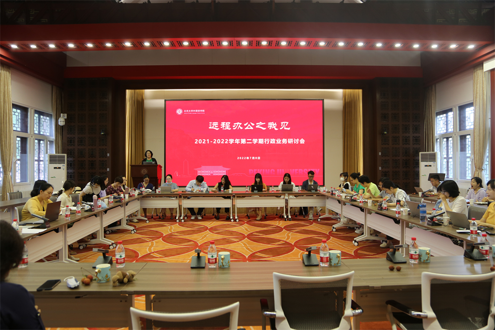 2022年7月8日上午,博鱼网页版2021-2022第二学期行政业务研讨会在民主楼208会议室召开,本次会议的主题是“远程办公之我见”。会议由副院长张冬梅主持,党委书记李淑静、党委副书记王恒以及全体行政人员参加了本次研讨会。