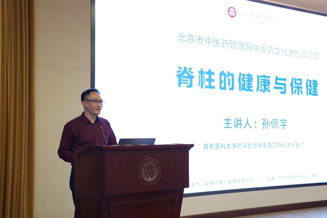 脊柱是人体的“顶梁柱”,是身体健康的根本。长时间伏案工作和学习,使教师和学生的颈椎、腰椎压力巨大。为了更好的保护脊柱,增强师生对脊柱健康的重视,作为“北京市中医院管理局中医药文化进校园”活动之一,11月20日博鱼网页版工会特别邀请骨科专家孙佩宇老师为大家带来题为“脊柱的健康与保健”的专题讲座,吸引了部分外院师生及校内老师前来聆听。讲座由外院工会常务副主席倪丽慧老师主持。