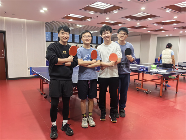 博鱼网页版男子队由伍昕钰、尹旭、陈瑞翾、王乃懋组成,12月9日,他们遭遇了实力强劲的计算机信科联队、集成电路学院2队、图书馆2队。伍昕钰老师球风凌厉,遇强则强,屡次出任第一单打,与对手比分焦灼,然而在关键球的处理上稍显稚嫩,遗憾落败。尹旭老师则依靠削球多次打出变幻莫测的回球,赢得对手的连连点赞,在当日比赛中为队伍赢下了一分。陈瑞翾老师球风沉稳,直拍打法反应灵敏,节奏极快。王乃懋老师在乒乓球打法上比较单一,主要依靠上旋球,难以破解对手多变的回球,无奈落败。