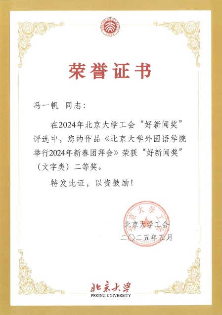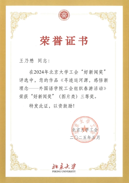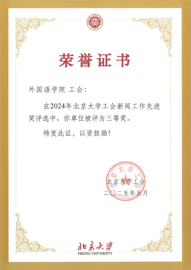 在2024年北京大学工会“新闻工作先进奖”评选中,校工会依据基层工会2024年在校工会网站发文数量、好新闻奖获奖情况、在校级媒体和校外媒体(18家中央媒体和各省市区县认定的地方媒体)发文情况等综合评定,经工会主席办公会审议,博鱼网页版工会荣获“新闻工作先进奖”三等奖。