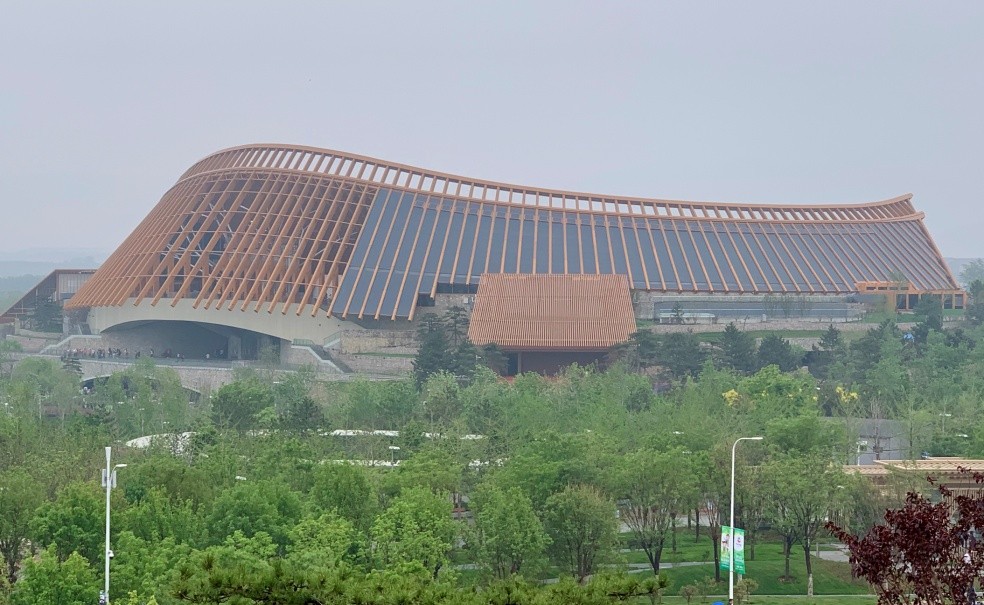 由于世园会占地面积大到相当于7个故宫,因此在时间有限的情况下只能挑重点选择性游览。原计划入园后由导游带领参观植物馆、中国馆、国际馆和中华园区等4个景区,但突如其来的一场风雨,使得大家只能化整为零、冒雨前行了。好在院工会是有备而行,早就事先为大家准备好了雨衣、饮料和食品,免去了大家因风雨游园导致的种种不便。