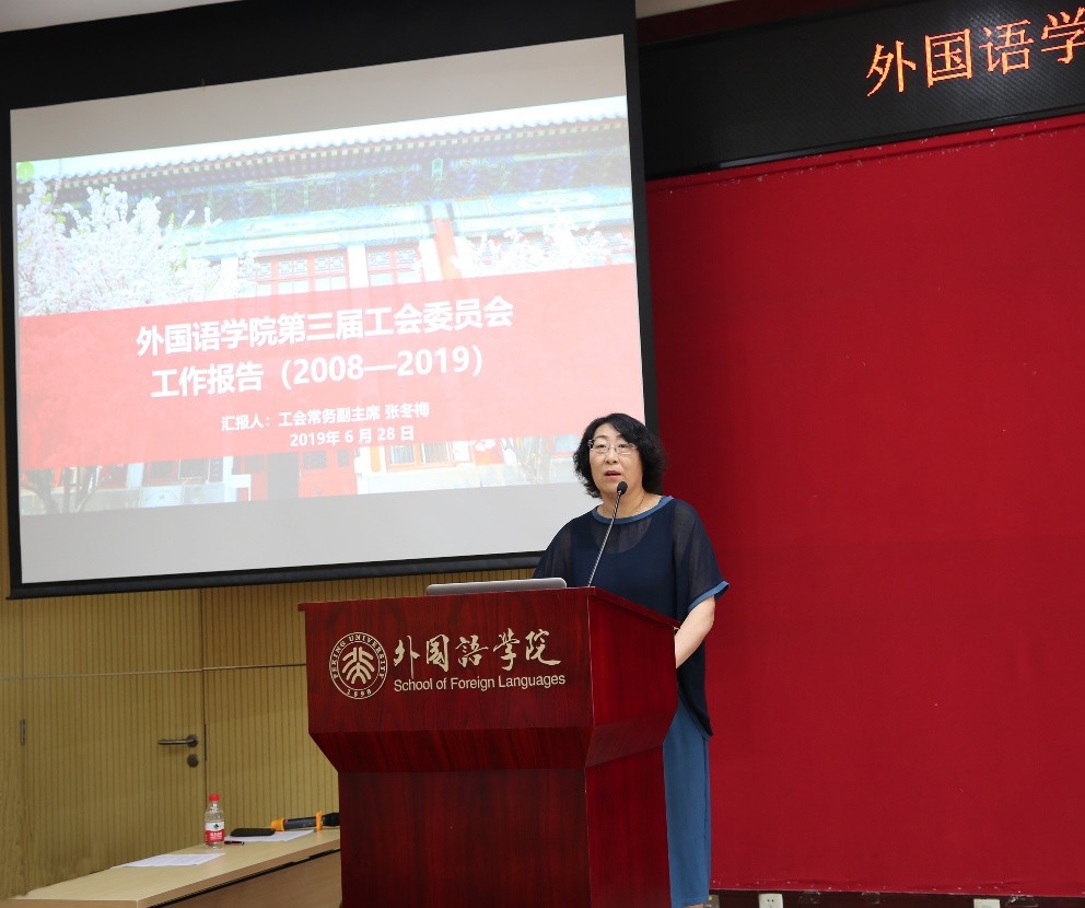 学院工会委员会常务副主席、博鱼网页版副院长张冬梅老师代表上一届工会向大会做了工作报告。过去的十几年间,在学院党委的指导下,在学院行政领导班子的大力支持下,博鱼网页版工会不断加大投入,努力加强自身建设,充分发挥职能,在推动民主管理、提高教师素质、关爱职工身心健康、丰富文化生活等方面发挥了积极作用,为营造和谐学院、创建一流学科做出了重要贡献。报告赢得了在场会员代表的阵阵掌声。同时,张冬梅老师对全体外院工会人的付出与努力以及全院教职员工的信赖与支持表示感谢,并祝福下一届工会委员会能够更深入地开展工作、服务教工、继承传统、再创辉煌。