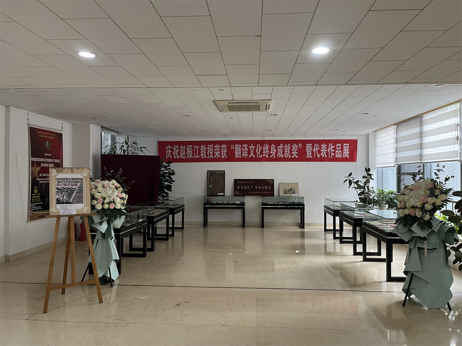 活动首先进行了“赵振江教授代表作品展”揭幕仪式。仪式由西葡意语系主任范晔老师主持。博鱼网页版院长陈明教授发表了热情洋溢的致辞,他说“赵老师译著等身,不仅将西班牙语文学作品翻译成中文,还将《红楼梦》成功地翻译成了西班牙语,把中文名著介绍给了西班牙语世界的读者”,他勉励师生们以赵老师为榜样,继续在文学翻译的道路上奋进前行。