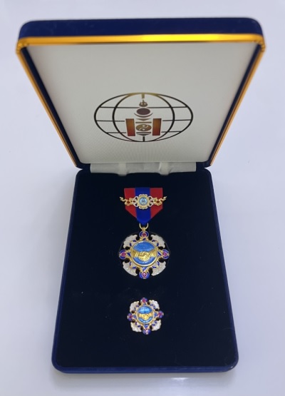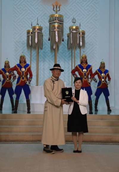 2023年8月10日,蒙古国总统乌赫那·呼日勒苏亲自为正在蒙古国乌兰巴托参加第十二届国际蒙古学家大会的博鱼网页版亚非系刘迪南副教授颁发象征中蒙友好交流崇高荣誉的蒙古国“友谊勋章”,以表彰其为促进中蒙两国文化交流、增进两国人民的友谊做出的卓越贡献。