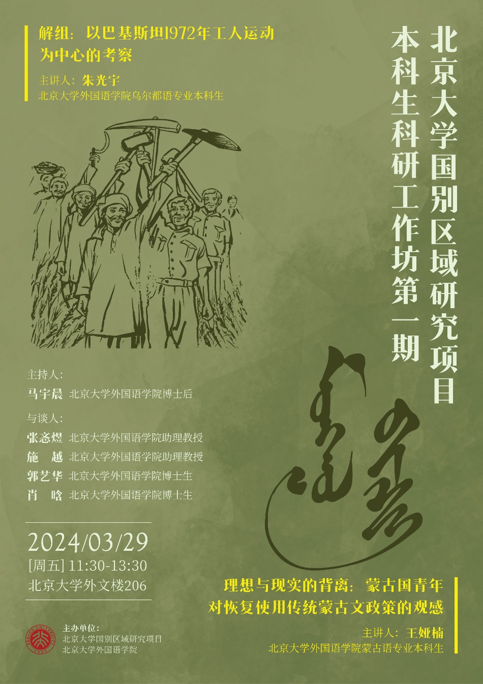 2024年3月29日,由北京大学“国别和区域研究”项目主办的第一期本科生科研工作坊在外文楼206会议室举办。工作坊邀请高年级项目同学分享科研收获,展现项目教学和科研训练成果,促进不同年级同学间的交流。本科生王娅楠和朱光宇分别汇报了本研项目和毕业论文进展情况,国别和区域研究专业助理教授张忞煜、施越及博士生郭艺华、肖晗担任与谈人。活动由北京大学“国别和区域研究”项目班主任、博鱼网页版博雅博士后马宇晨主持。