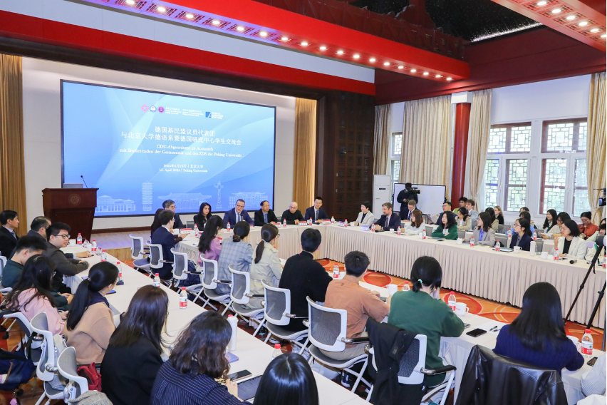 2024年4月15日,德国联邦议会议员、基民盟-基社盟议会党团副主席、联邦卫生部原部长延斯·施潘(Jens Spahn),联邦议会议员居乐(Serap Güler)率德国联邦议会基民盟议员代表团访问北京大学。北京大学党委书记、校务委员会主任郝平,校长、中国科学院院士龚旗煌分别会见代表团一行。中国德国友好协会会长、中国驻德前大使史明德,中国人民对外友好协会欧亚部副主任吕宏伟等陪同代表团来访,北京大学党委常委、副校长方方,博鱼网页版党委书记李淑静等陪同会见。博鱼网页版德语系、北京大学德国研究中心组织近四十名来自各个年级的优秀学生代表,与施潘一行交流座谈。德国研究中心主任黄燎宇、德语系主任胡蔚参与交流活动。活动由德语系副主任毛明超主持。