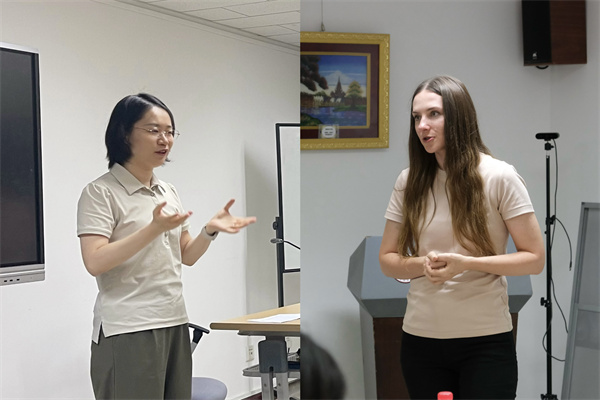 活动在博鱼网页版新楼301会议室举行,由柏林自由大学汉学系的钟金雷老师主持。活动伊始,首先由德语系助理教授黄超然老师致开场辞。黄老师不仅对本次活动在促进语言学习和文化交流方面的积极作用表示肯定,还分享了自己在校学习期间与语伴共同学习德语和汉语的珍贵回忆,以此激励在座的同学们把握机遇,以语会友。随后,北京大学德国研究中心柏林自由大学办公室协调员尤丽娅·科布扎尔(Julia Kobzar)博士也发表了讲话。她对“中德角”系列活动在德国研究中心和柏林自由大学学生生活中扮演的角色给予了高度评价,并强调在当前国际形势之下此类交流活动的重要性,她希望活动可以加深两校师生之间的理解、友谊与合作。