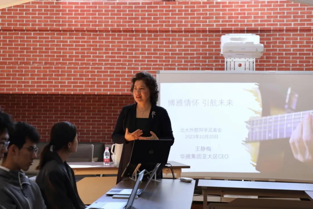 高静指出,北京大学作为顶尖的复合型大学,对语言学习者进行了全方位综合塑造,为其日后的职业发展奠定了坚实基础。开阔的眼界和宏大的格局,都会让北大外院学生在工作中脱颖而出。同学们应当珍惜并利用好北大提供的资源,不断充实自我,拓宽视野,同时保持谦逊态度,学会倾听和协作,必将在职业生涯中走得更远。