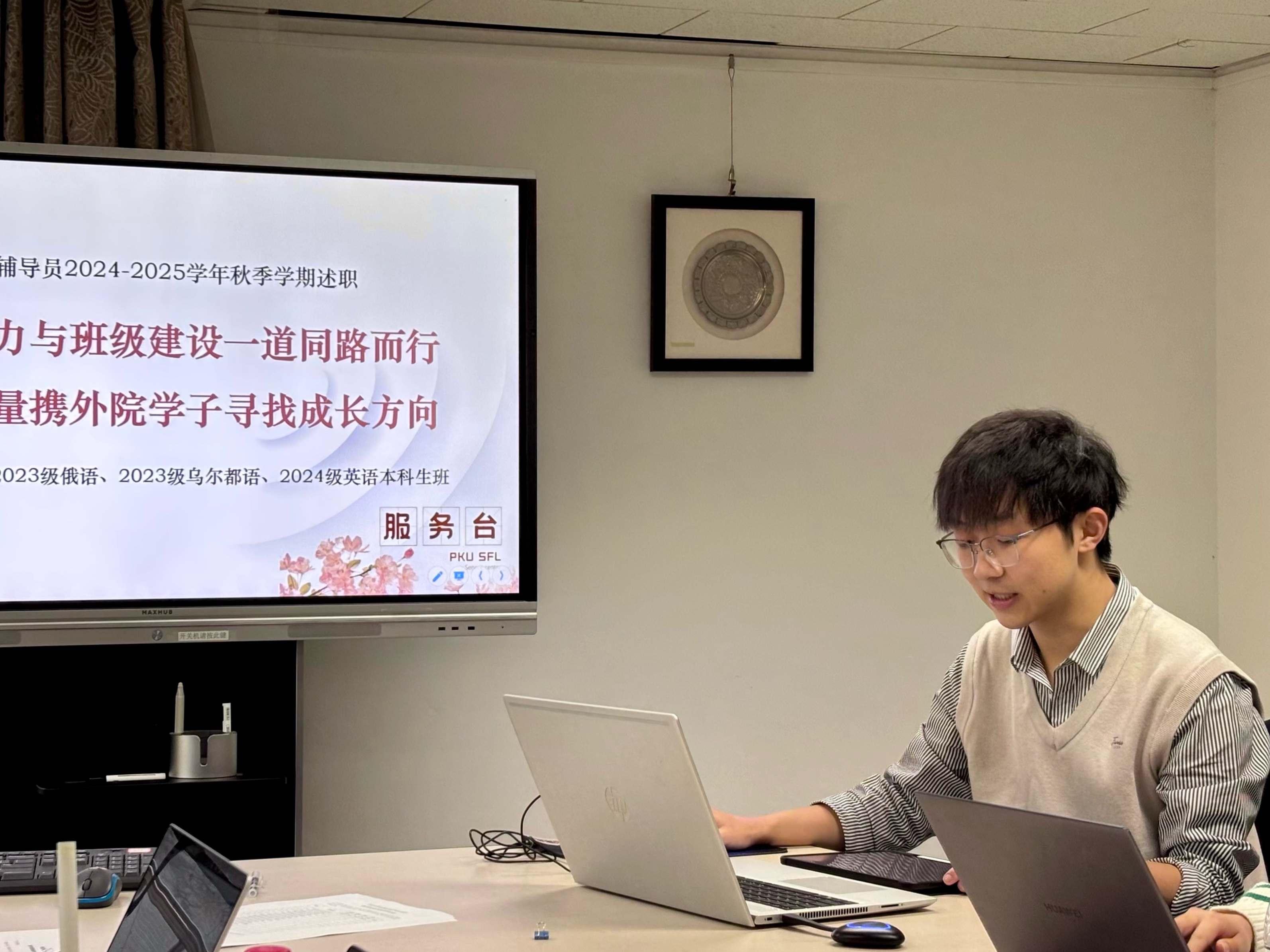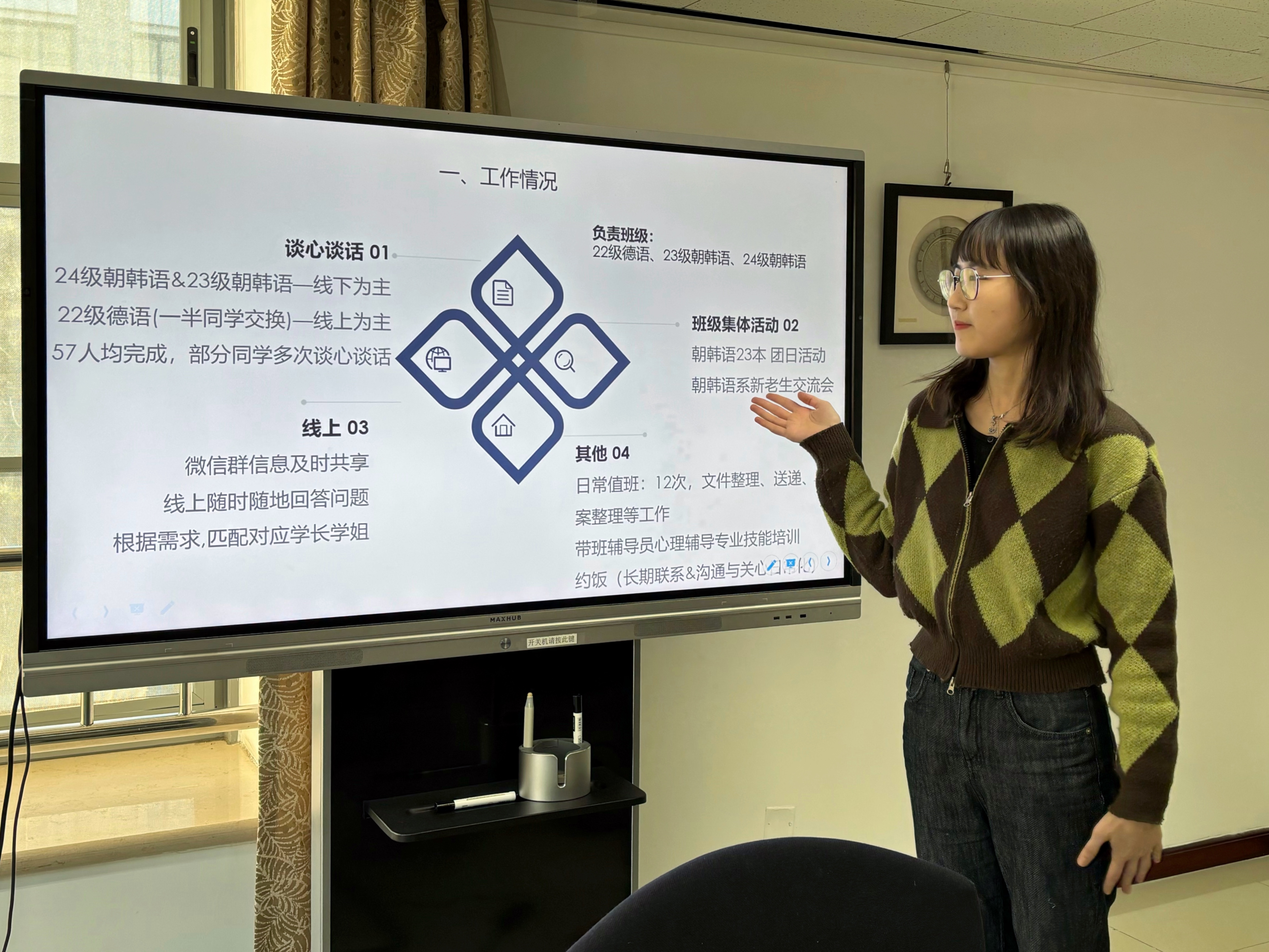 为进一步提升学院学生工作水平,充分发挥朋辈辅导员在“三全育人”中的重要作用,加强带班辅导员间的交流学习,12月27日下午,博鱼网页版在外院新楼201室组织召开2024-2025学年秋季学期带班辅导员述职交流会。院党委副书记冯美娜、团委书记伍昕钰、团委常务副书记丁雨婷,团委副书记李欣雨、杨溢和16名带班辅导员参加会议。会议由李欣雨主持。