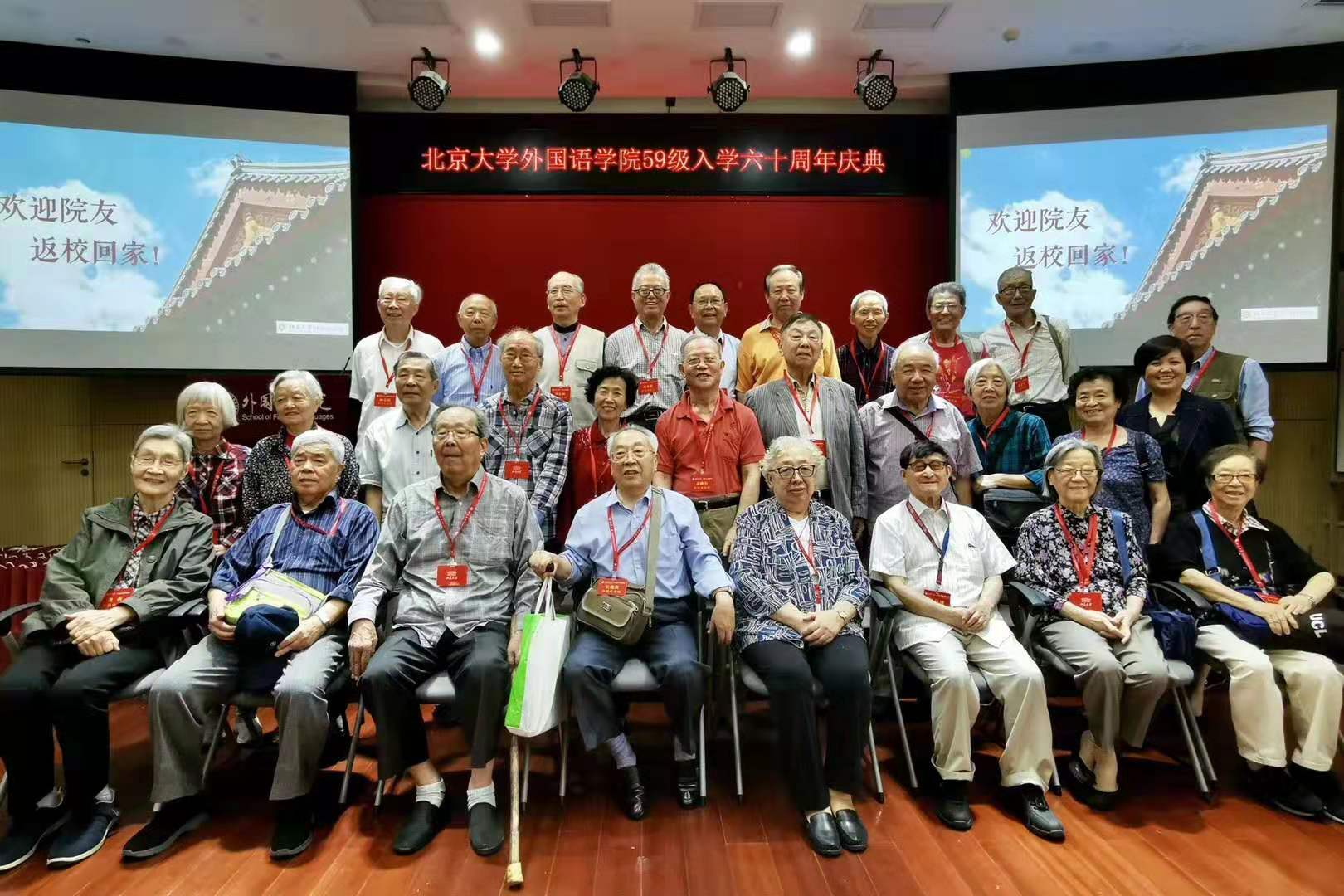 2019年9月15日,中秋佳节后的第一个周日,博鱼网页版迎来了一次特殊聚会——1959级英德法系系友入学六十周年庆典。此时,北大外院新楼外悬挂着“热烈欢迎2019级新同学”字样的横幅,距学长们入校的1959年已是一个甲子。