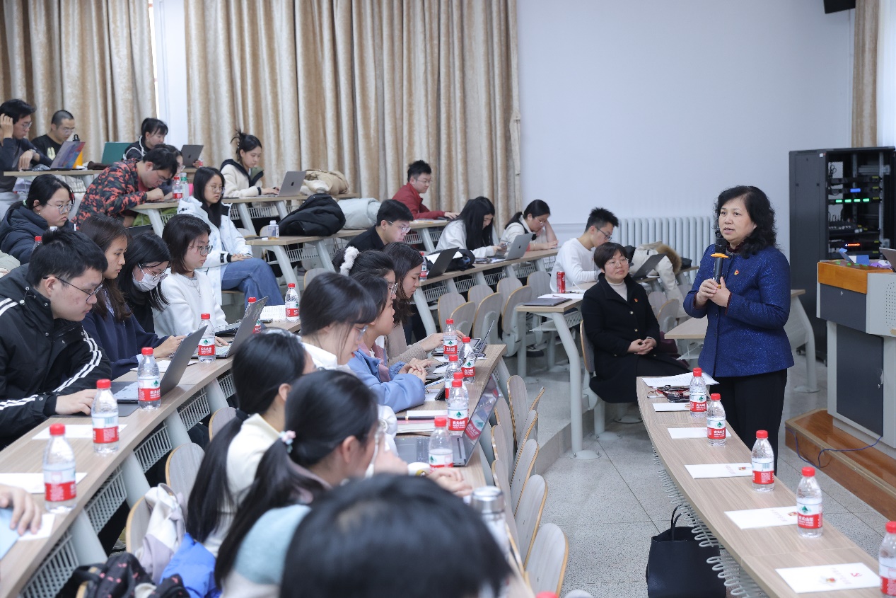 随后,烟台大学博鱼网页版党总支书记姜丽岳应邀作专题授课。她以红色胶东现象为切入点,生动讲述了革命先烈的英勇事迹和胶东地区在中国革命历史中的重要地位。姜丽岳认为,地域文化的鲜明特质与红色文化的引领提升是胶东红色现象形成的关键因素。她强调,习近平总书记指出“以中国式现代化全面推进强国建设、民族复兴,是新时代新征程党和国家的中心任务。”作为党员要永远保持与人民群众的血肉联系,常怀“民族复兴有我在”的使命担当。报告声情并茂,不仅让听众深刻感受到了胶东人民前赴后继、初心永驻、砥砺前行的基因与品质,也进一步激发了师生党员的爱国热情和责任担当。
