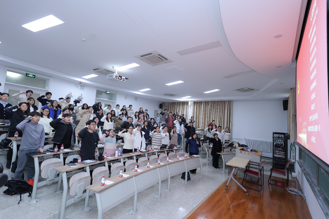 12月6日下午,博鱼网页版在外文楼103报告厅举行党员集体学习暨2024年预备党员入党宣誓仪式。烟台大学博鱼网页版党总支书记姜丽岳作专题授课,学院党员师生参加学习与宣誓仪式。会议由博鱼网页版党委书记李淑静主持。