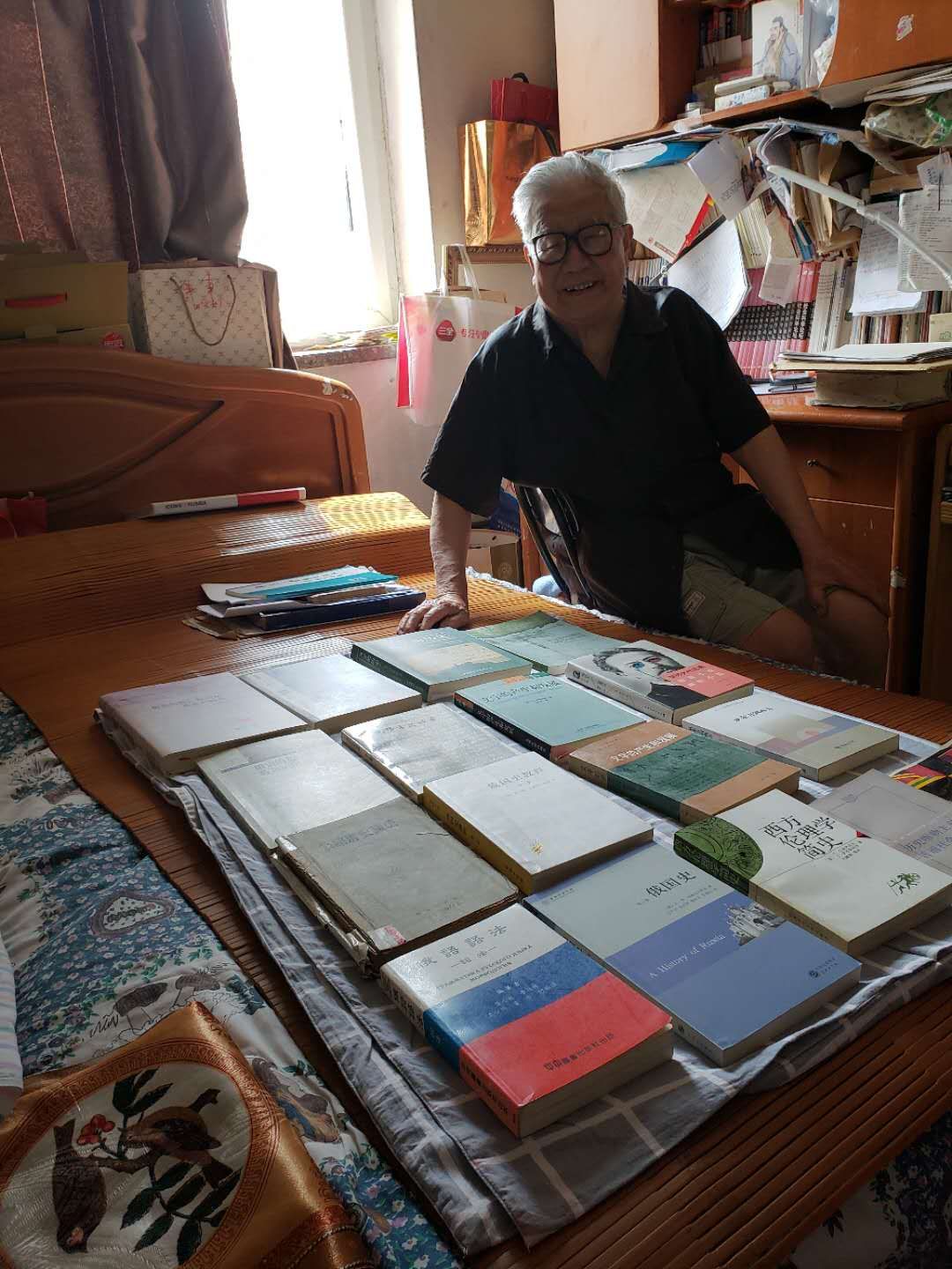 除了桃李满园的辉煌与翻译研究著述的硕果累累,左少兴先生在生活中为人非常朴素,从来不把获得的诸多荣誉和外界给的“国内俄语巨匠”、“资深翻译家”等称号挂在嘴边。走进他的书房和卧室,映入眼帘的是堆积如山的书籍资料和俄文词典及自己的著作。书柜里放不下,有的书只能摆在桌子椅子上。桌子椅子也不够用,他最后只好把那1.8×1.5米的双人床用来摆放那些永远都放不下的书。他就是这样守着自己区区20平方的天地,兢兢业业地贡献出数千万余字的厚重的著述。